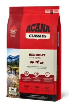 Acana Classic Red inneholder gressforet lam, angus storfekjøtt og yorkshire svin levert ferskt eller rått daglig i Wholeprey™ blandingsforhold for å gi komplett næring til din hund.