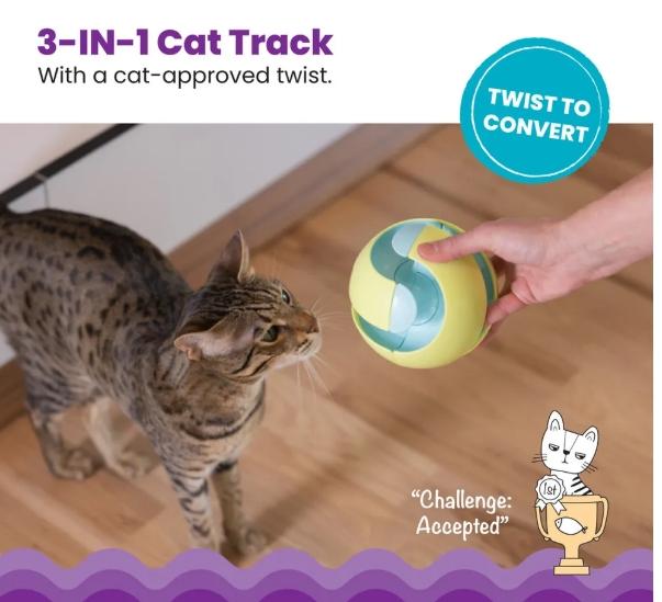 Konverterbar katteballbane med tre måter å leke på; perfekt for katten som ønsker en utfordring