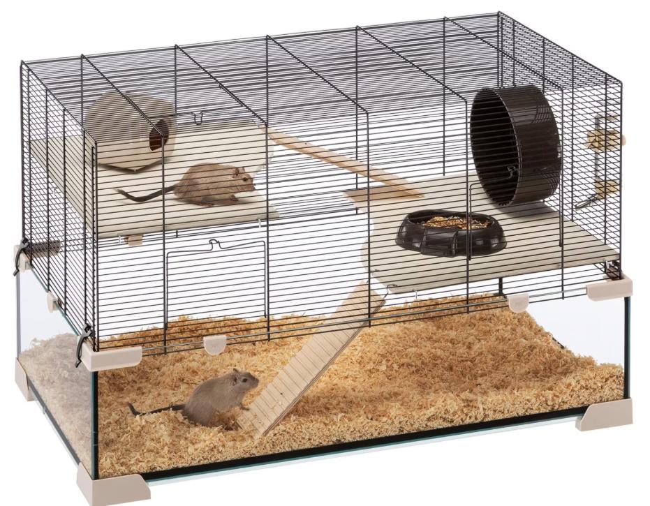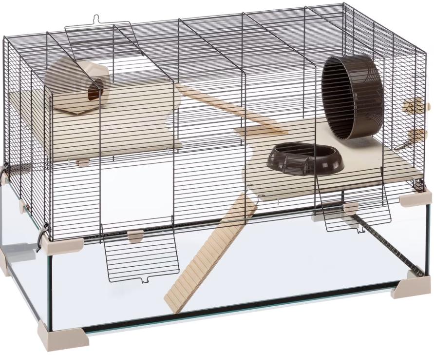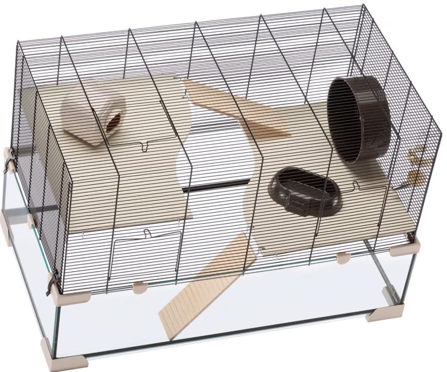 Karat er det nye konseptet for hamster- og musebur i glass som tilbyr en spesiell gjennomsiktighet og derfor komplett visjon av gnageren din innvendig. Den opprinnelige dybden på tanken lar kjæledyret ditt grave og gjemme seg i sagflis. Trehyllene er behandlet med en spesiell væskebestandig lakk. La hamsteren din trene litt og ha noen spesifikke områder for de forskjellige daglige aktivitetene. Karat-overdelen er laget av robust smalt trådnett, spesielt designet for å sikre stor sikkerhet og dermed unngå at gnagere kan passere gjennom tverrstengene.
