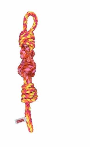 KONG Rope Bunjis indre elastiske strikksnor gir en dynamisk fjær for ekstra morsom tautrekking og kast med denne slitesterke, knyttede, vridde tauleken. To lettfattelige løkker gir interaktiv enkelhet, mens strikkmekanismen myker opp trekkbevegelsen. Perfekt for både innendørs og utendørs aktiviteter.