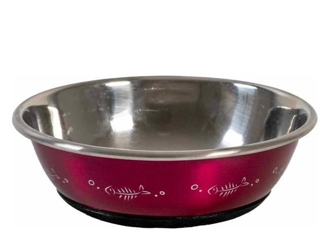 Katteskål Rustfri Antislip Rosa Med Fisker 350 Ml 12,5 Cm