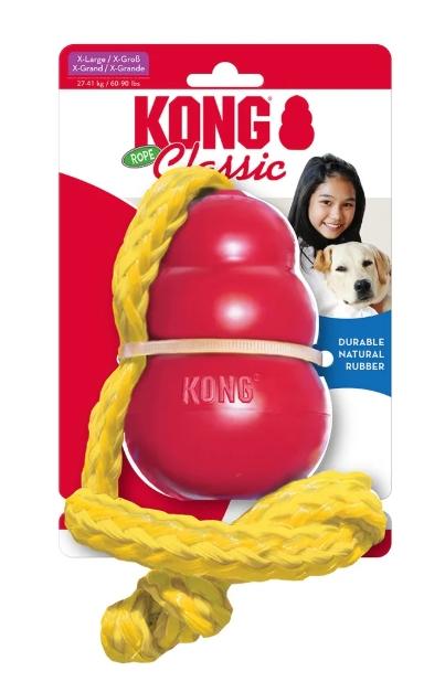 Den klassiske formen til Kong Classic har vært standarden for formen på hundeleker i over 40 år. Kong Classic med tau er en morsom vri på klassikeren med et tau for ekstra lange kast når du for eksempel leker apport. Den uforutsigbare spretten bidrar til actionfylt spilletid.
