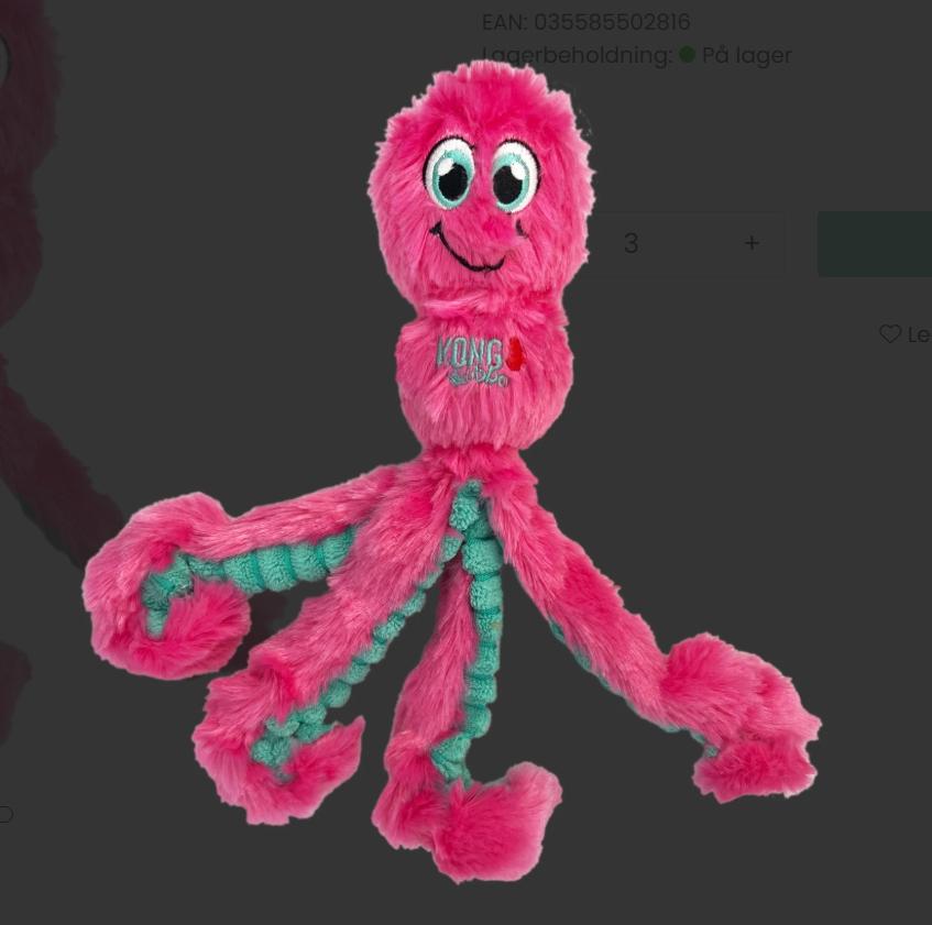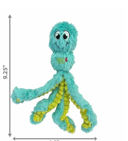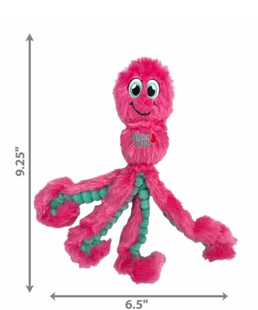 KONG Wubba Octopus’ dinglende ben og lange, slappe kropp gjør den ideell for instinkt-tilfredsstillende risting. Pivelyden forlenger leken. Ideell for innendørs drakamp, risting og apportering, denne søte undervannsvennen er også flott for kos, takket være hans supermyke plysj. Minimal fylling for mindre rot.