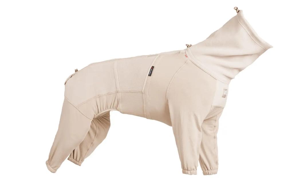 Trail Quest fleece overall er en heldekkende hundedrakt designet for varme, komfort og bevegelsesfrihet i kaldt og tørt vær. Den kombinerer høykvalitets Polartec-fleece® med pustende rutenett-fleecepaneler på bryst, mage og ben for å regulere temperaturen samtidig som hundene holdes varme fra nakke til ankler. Med fem justeringspunkter, to ved halsen, to innvendig og ett ved halen, pluss elastiske mansjetter, gir den en sikker og personlig passform i 11 størrelser. Ideell for korthårede eller kuldefølsomme hunder, kan den brukes alene på tørre dager eller som et underlag under et skall når dårlig vær kommer. Den forskjøvede YKK-glidelåsen® og trykknapplukkingen sikrer enkel på/av og gir ekstra komfort når man legger lag på lag. Reflekterende 3M-detaljer™ gir synlighet i svakt lys. Den er perfekt for vinterturer, campingturer eller restitusjon etter aktivitet.