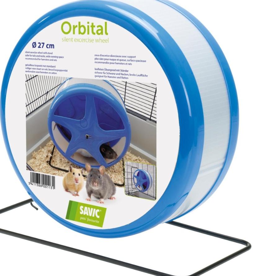 Dette unike hjulet med stativ er designet for å dekke kjæledyrets behov for mosjon på en stille og effektiv måte. Hjulet har en bredere løpeflate, noe som gir din lille venn mer plass til å løpe fritt og utfolde sin naturlige atferd. Den halvlukkede konstruksjonen sørger for at kjæledyret holder seg trygt inne i hjulet under trening, noe som reduserer risikoen for skader. Dette hamsterhjulet er kjent for sin stillegående drift, noe som gjør det ideelt for bruk både dag og natt uten å forstyrre omgivelsene. Dette er spesielt verdifullt for eiere som ønsker å skape et rolig miljø for smågnagerne sine. Det halvlukkede designet gir ikke bare sikkerhet, men skaper også en følelse av trygghet for kjæledyret ditt, noe som gjør Orbital Medium til et populært valg blant gnagereiere. Med dette revolusjonerende treningshjulet investerer du i kjæledyrets velvære ved å gi det en morsom og trygg treningsopplevelse.
